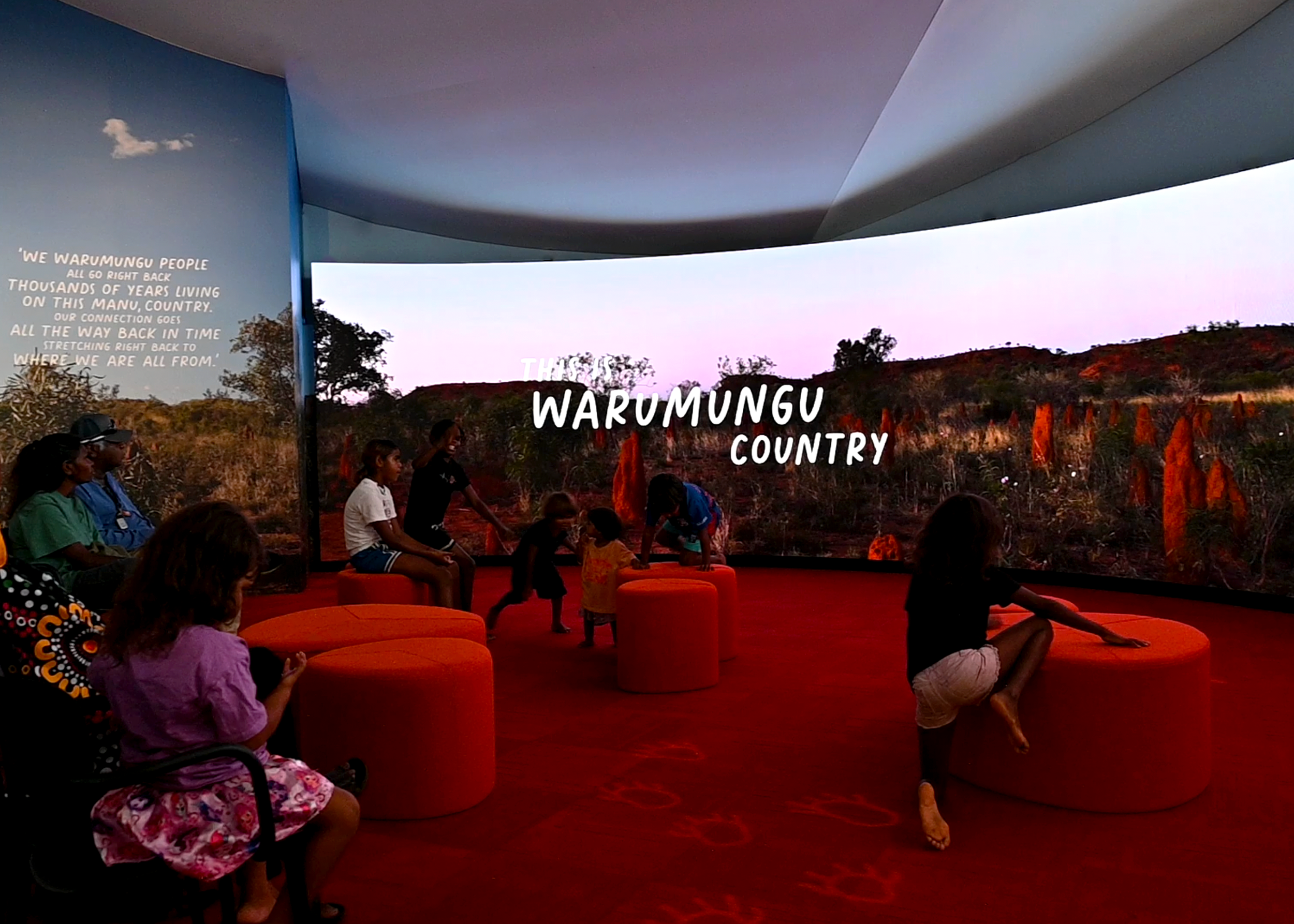 The precinct itself reflects the landscapes of Warumungu Country. The grounds include an arid-zone bush garden with native plants, a reconstructed soak, and cultural spaces such as men’s and women’s dance circles, artefact-making areas, and ceremonial fire pits used for cooking and smoking ceremonies. These outdoor areas allow the Centre to function not only as an interpretive space but also as a living cultural environment where performances, cultural activities and community gatherings can take place.