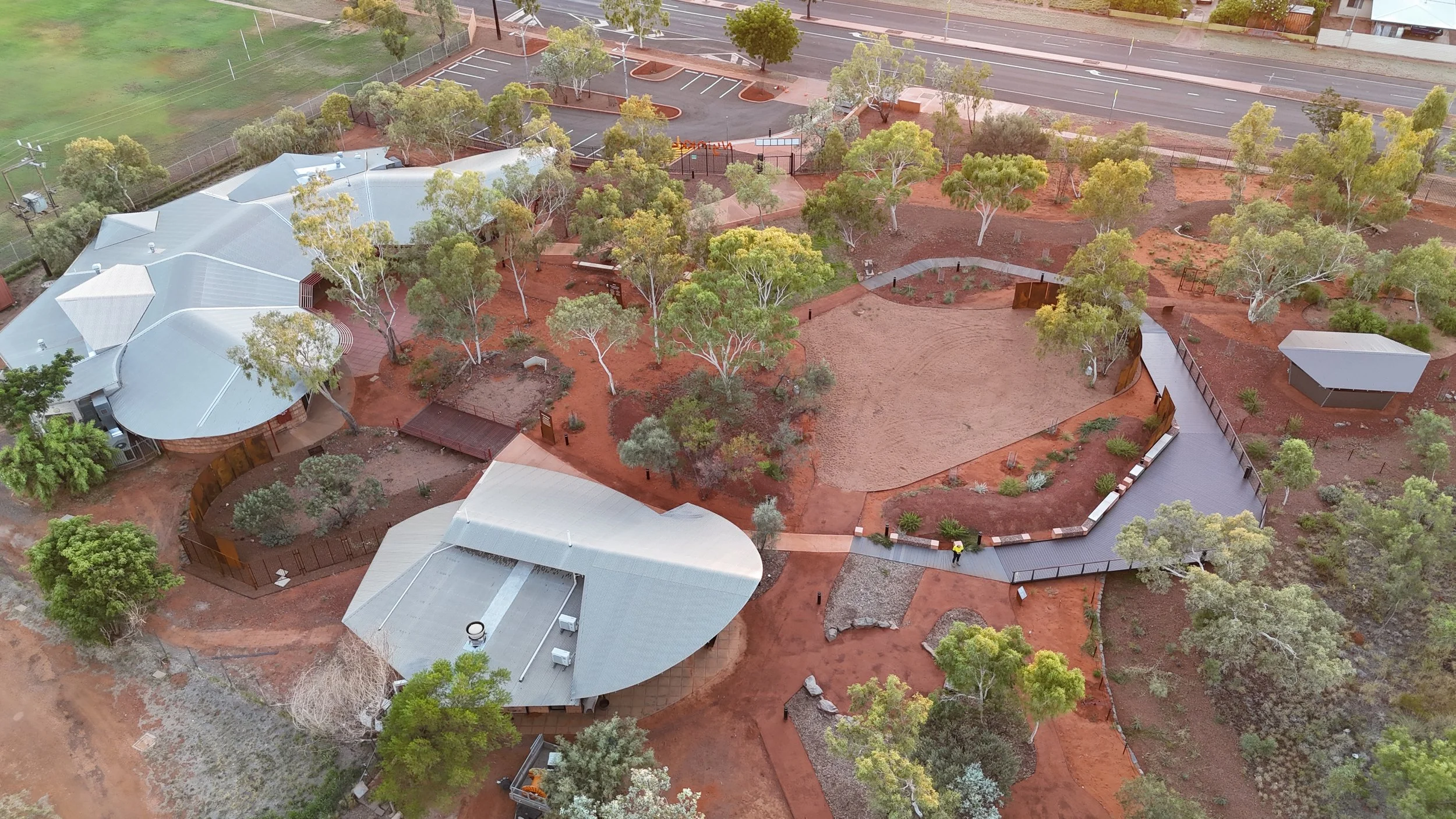 Nyinkka Nyunyu is built adjacent to a sacred site connected to the ancestral Nyinkka, the spiny-tailed goanna, a powerful being in Warumungu cultural tradition. The name “Nyinkka Nyunyu” refers to the place where this ancestral being travels through Tennant Creek. The architecture of the building itself reflects this story: the roof forms and radial layout are inspired by the scales and movement of the goanna, symbolically embedding the story of the Nyinkka into the structure of the centre.